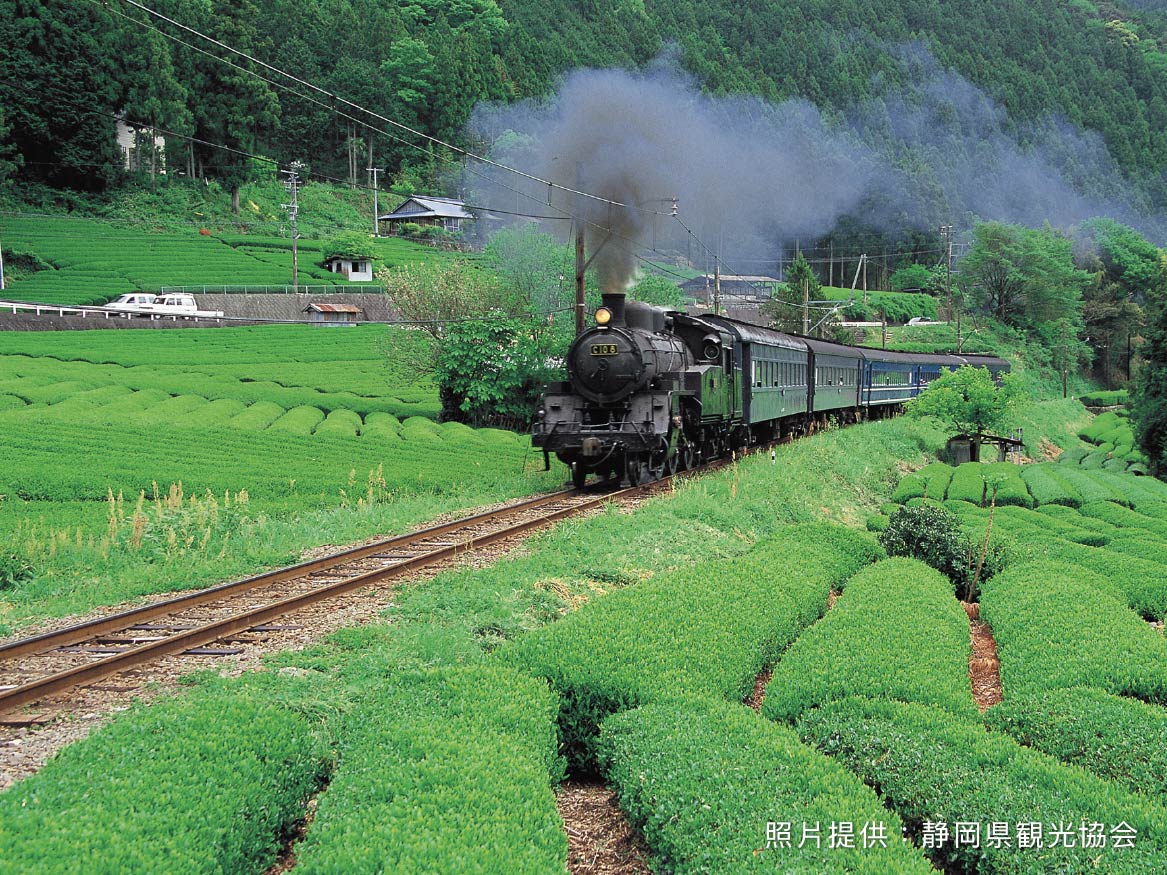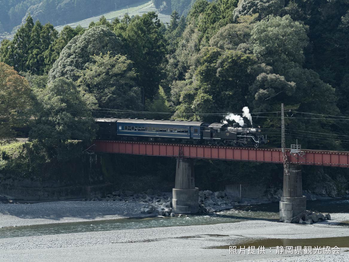 大井川鐵道-「SL南阿爾卑斯1號」:是大井川鐵道公司現役的蒸汽火車之一,主要行駛於大井川本線的金谷站至千頭站區間,全長約39.5公里。這趟懷舊之旅讓乘客能夠穿越茶田、溪谷和山景,體驗昭和時代的復古氛圍。車廂內保留了木製座椅、吊扇和電燈泡等設施,讓人彷彿回到過去的時光。