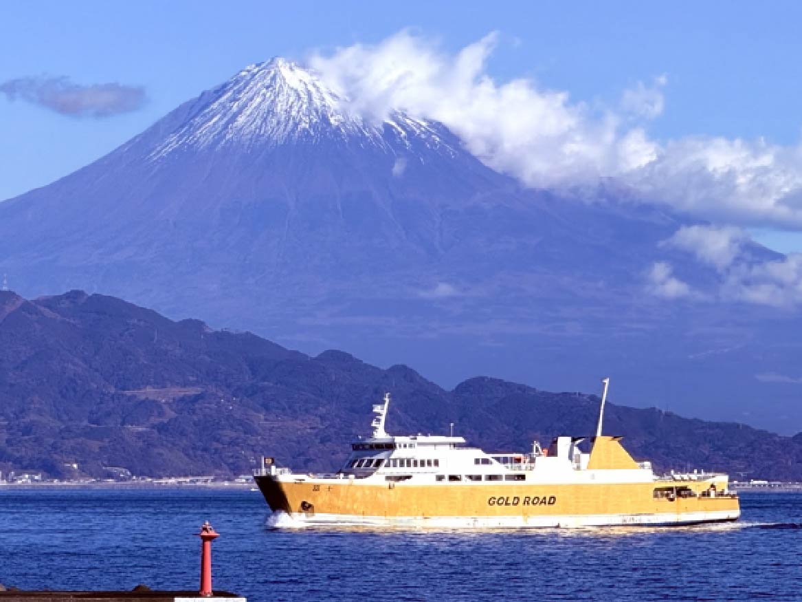 駿河灣渡輪:位於日本靜岡縣,提供往返清水港與土肥港的海上交通服務,是欣賞駿河灣壯麗海景的絕佳方式。乘坐渡輪,遊客可以一覽富士山倒影在海面的美景,以及周邊伊豆半島和靜岡沿岸的自然景觀。渡輪上設有觀景甲板與舒適座位,適合拍照、休憩與親近海風,特別在夕陽西下時,整個海灣染上金色光影,景色迷人。